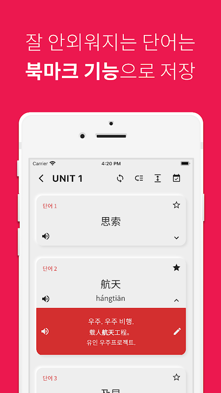 Кроме того, вы можете использовать функцию закладок для изучения китайского языка, в котором вы часто делаете ошибки или плохо помните.