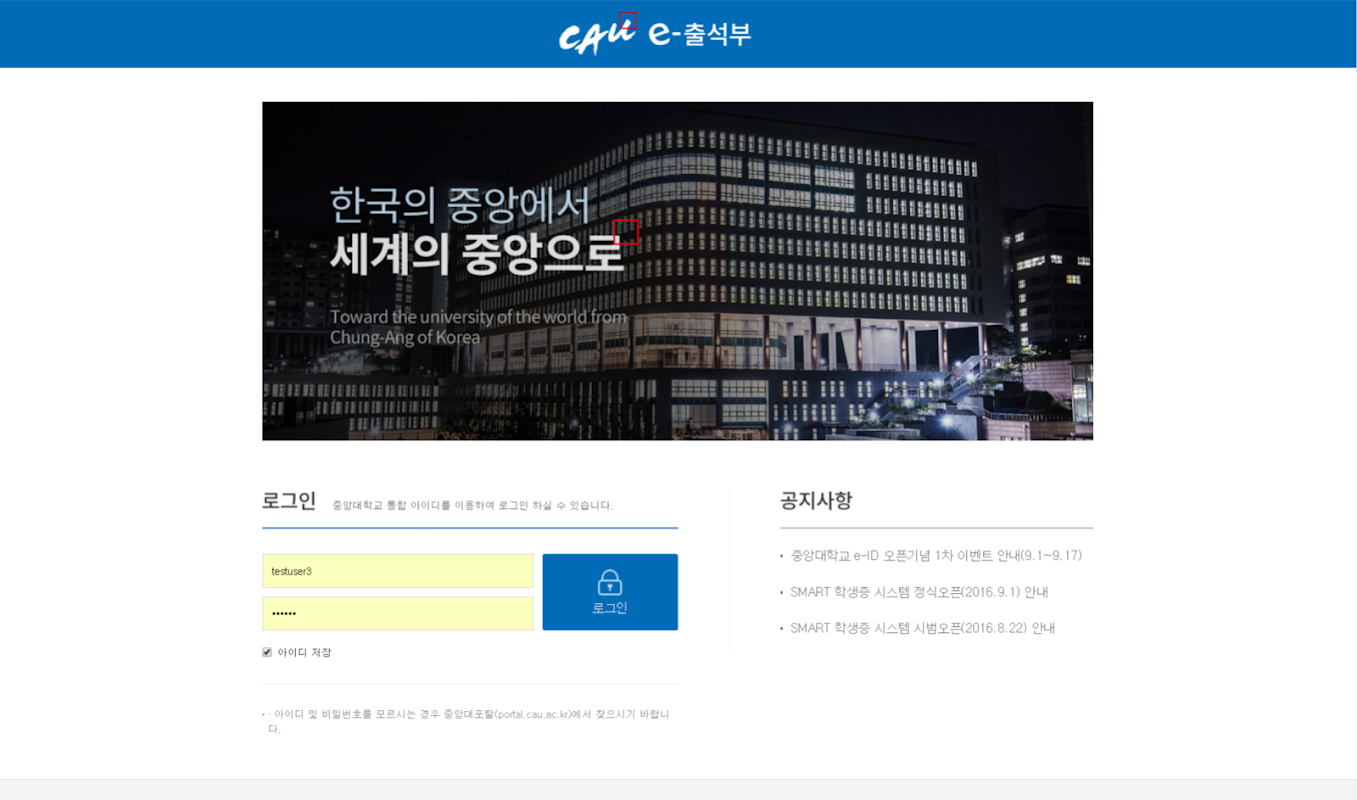 Гибридные приложения, сделанные с помощью электронного посещаемости (посещаемость) e- веб-версии (http://att.cau.ac.kr).