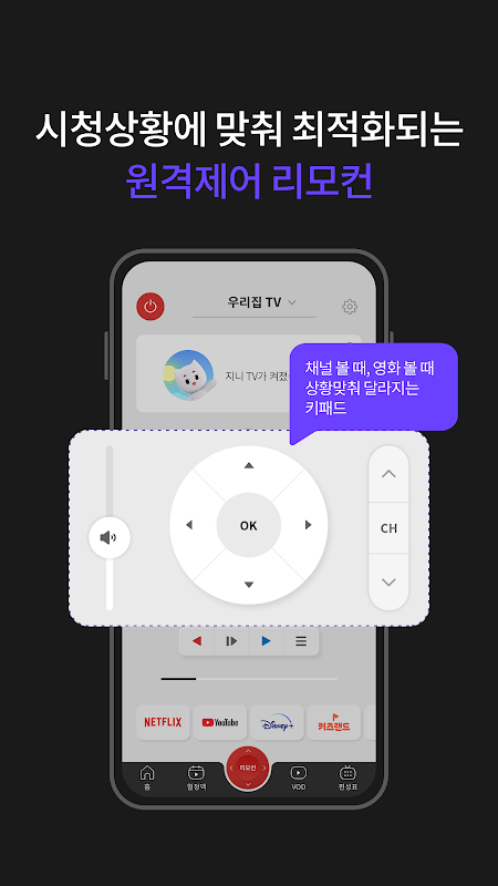 이제 VOD 재생 + 셋탑 원격제어를 갓벽하게!!지니 TV 모바일에서 즐겨보세요.