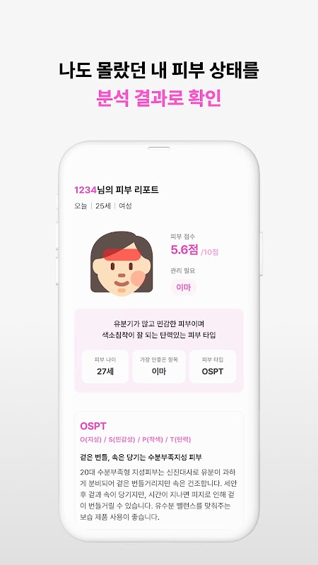 С моим отчетом о коже вы можете проверить свой тип кожи, проблемные зоны для каждого элемента и т. д. одним взглядом, а не просто получить оценку.