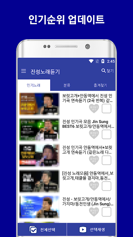 트로트가수 진성의 모든 노래를 들을 수 있습니다.