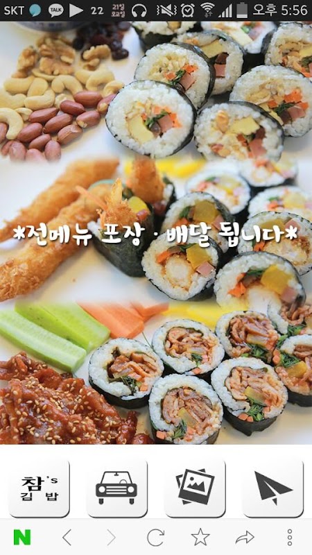 매운제육김밥, 크림치즈견과류김밥, 새우튀김김밥, 포장 배달 가능, 등