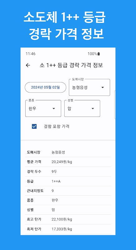 Приложение «Информация о продуктах животноводства», разработанное с использованием общедоступного API Института оценки качества продуктов животноводства, предоставляет информацию об аукционных ценах для каждого оптового рынка животноводческой продукции по всей стране. Узнать цену на продукцию животноводства можно несколькими способами. В меню поиска крупного рогатого скота класса 1++ можно искать самую высокую/самую низкую цену за единицу, сумму сделки и т. д., выбрав дату, оптовый рынок, породу, пол и т. д. Это приложение позволяет вам понять рыночные тенденции, необходимые для животноводства.