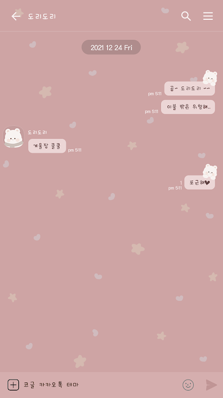 Oписание 카카오톡 테마 - 곰도리도리_이불 밖은 위험해