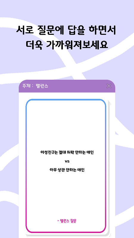 Oписание 커플 질문 : 연인을 위한 밸런스게임, 질문 카드