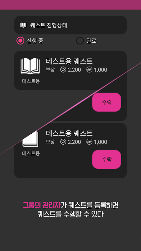 그룹을 만들어 그룹 관리자는 퀘스트를 등록하고, 일반 멤버들은 퀘스트를 수행한다