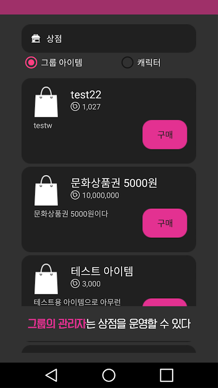 퀘스트를 수행해 포인트를 모아 그룹 관리자가 운영하는 상점을 이용하거나