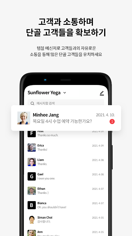 고객들은 템블 메신저를 통해 관심있는 업체와 소통하길 원합니다. 고객들과의 자유로운 소통을 통해 많은 단골 고객들을 유치하세요.