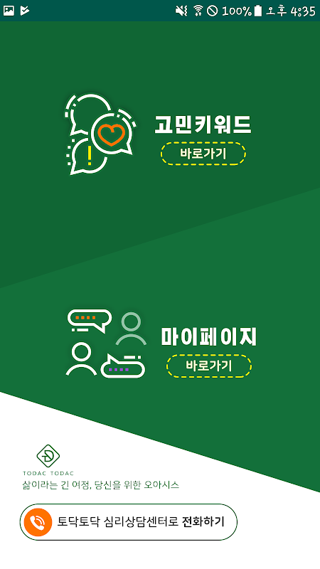 토닥토닥 심리상담센터는 한국상담학회 우수 전문상담기관이자 정부 인증 사회적기업입니다. 오프라인 뿐 아니라 온라인 상에서 여러분들과 함께 고민하기 위한 공간을 마련하였습니다. 당신의 삶과 마주하게 되어 반갑습니다.