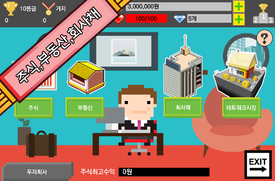 각 건물별 투자방식을 익히고 돈과 석유와 투자계금을 높히세요!