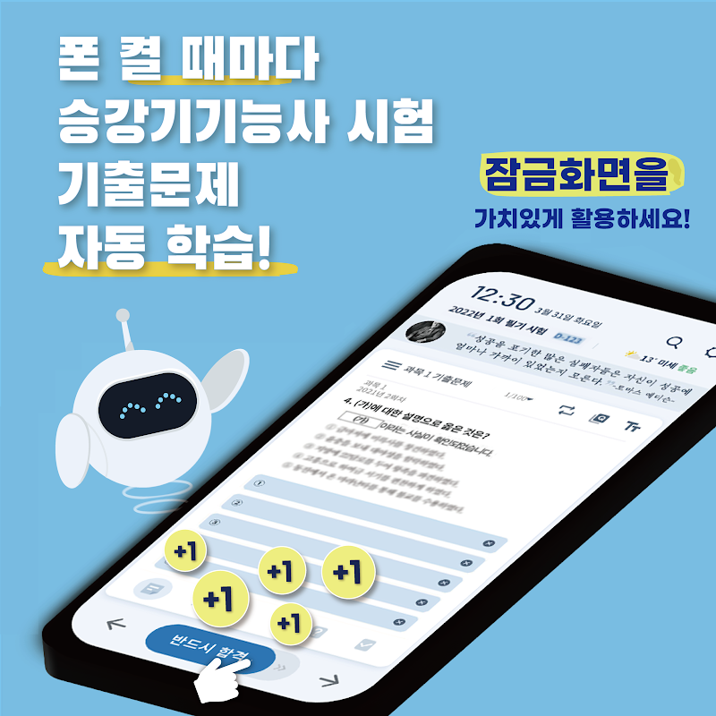 Oписание 틈틈봇-승강기기능사 (잠금화면 자동 자격증공부)+알람