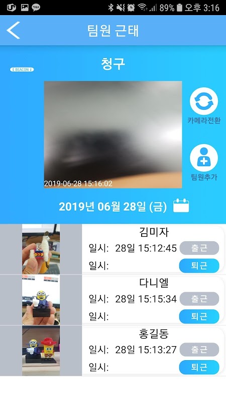 ● 페이스프로 앱은 사진과 비콘 제품과의 근거리 통신을 통해 더욱 정확한 근태 관리를 수행하고 있습니다.