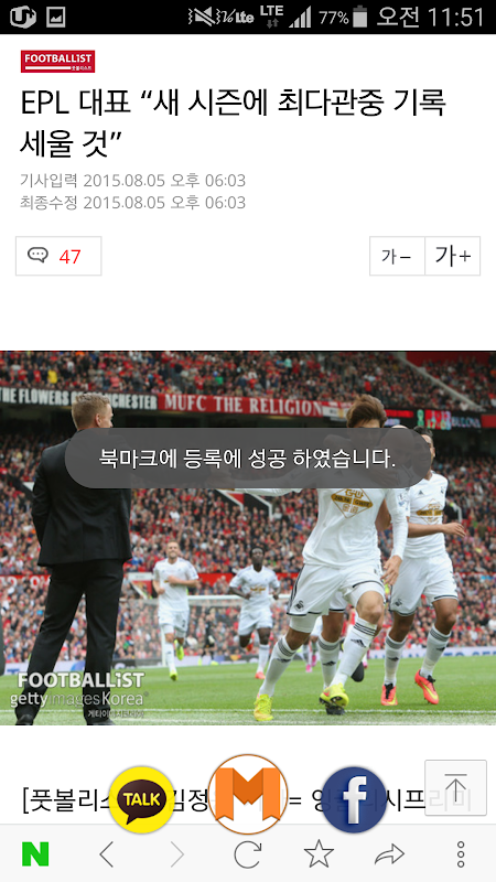 2. 북마크 공유 - 내가 발견한 재미있는 뉴스나 도움이 될 정보를 담은 웹 페이지를 SNS (페이스북, 카톡, 메일, SMS)를 통해 가족, 친구, 동료에게 손쉽게 공유할 수 있습니다.