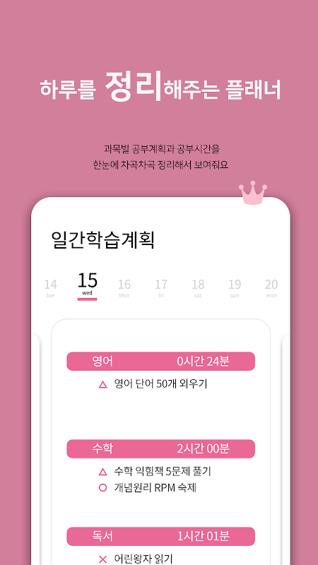오늘 공부할 문제집이나 인터넷강의도 간편하게 기록할 수 있어요