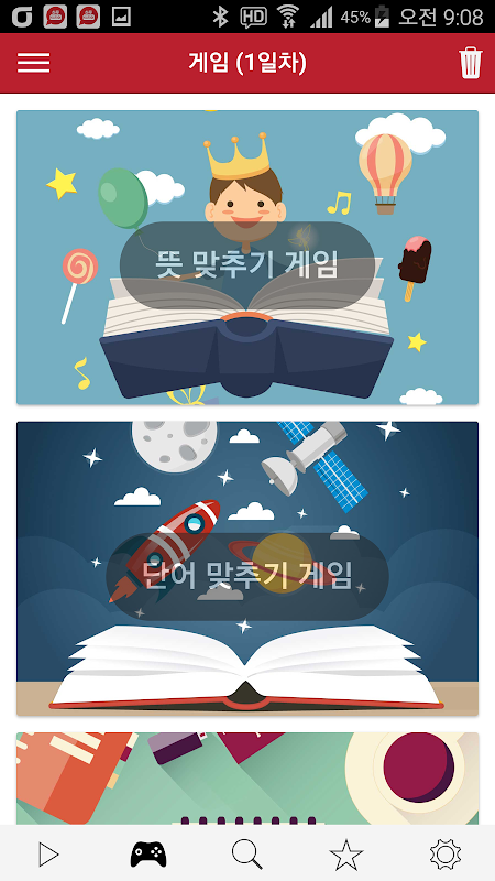 - 어느정도 눈과 귀와 입에 익히면 게임을 순서 (뜻 > 단어 > 쓰기) 대로 해본다.