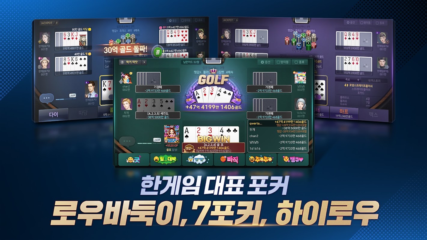 От лоу-бадук до хай-лоу-бакара и блэкджека! Наслаждайтесь тем же развлечением, что и Hangame Poker на ПК, бесплатно и на мобильном телефоне!