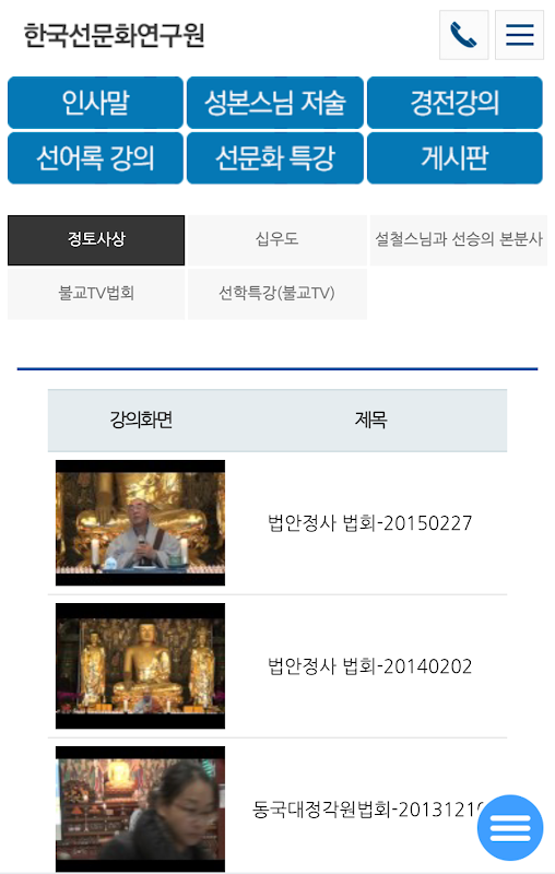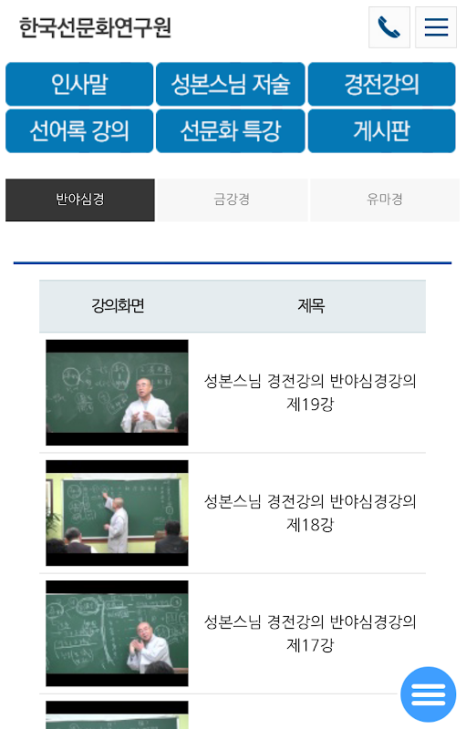 그동안 불교 TV를 통하여 선학특강과 선불교특강, 임제어록을 강의하면서 많은 불자님들과 불법의 인연을 나누게 되었고, 제불 보살님의 원력과 크나큰 가피로 한국 선문화연구원 홈페이지를 개설하게 되었습니다.