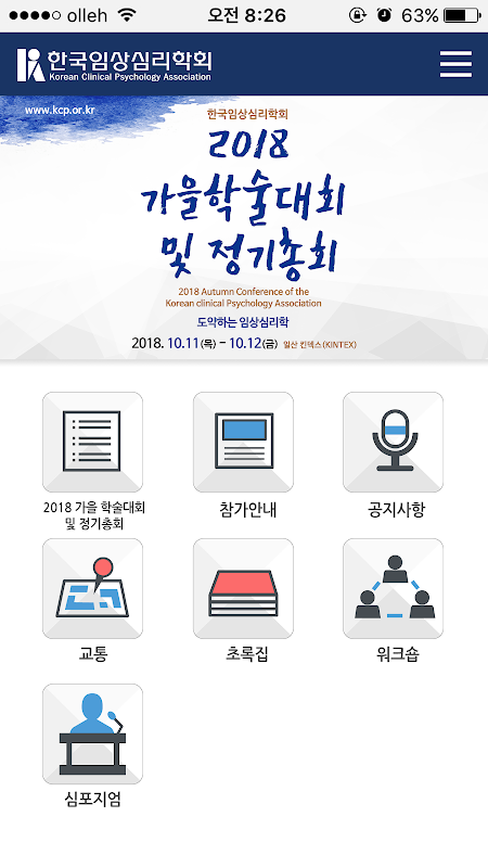 Корейская ассоциация клинической психологии 2018 Осенняя конференция и регулярное мобильное приложение Генеральной Ассамблеи.