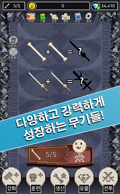 검쾅!화/최강/클릭/키우기/단순중독/팀버맨/나무베기/대나무베기/검강화/검키우기/클리커/무한/미니게임/탭게임/단순한게임/던전/clicker/clicker game/해골키우기/해골왕키우기 /뼈 키우기/머지/BoneSmith/Bone/Smith/강화/머지 레이서/합치기/에벌루션/evolution