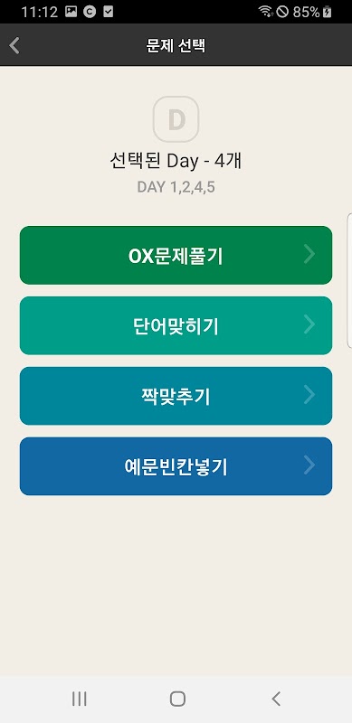 2. 취약한 Day 완벽 학습을 위해 Day 5개까지 선택하여 게임 가능