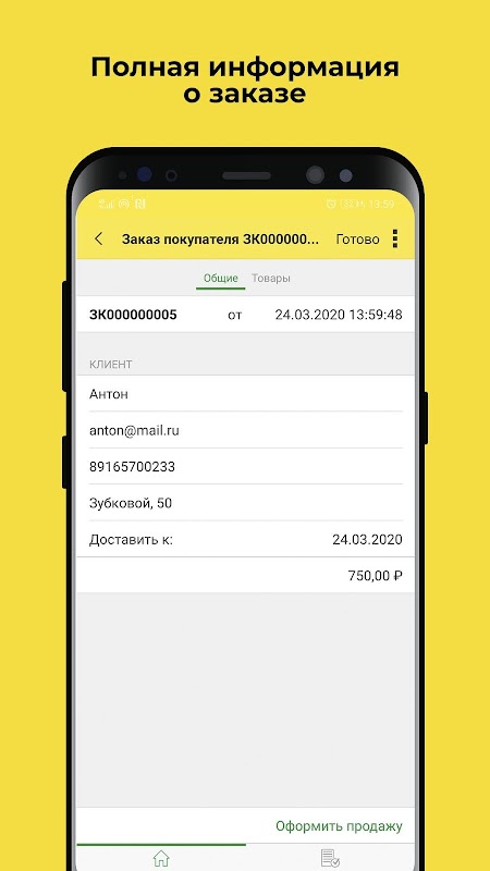 Редактировать и создавать заказы: добавлять товары и услуги, искать их по названию, артикулу и цене.