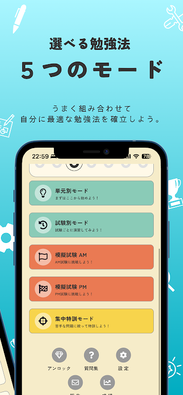 Содержит прошлые вопросы из последних 8 сессий. 3 режима на выбор: на основе модулей, на основе экзаменов и интенсивное обучение.