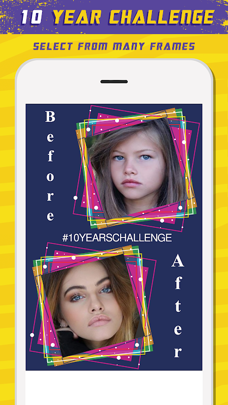 Enjoy #10YearChallengeand create your own story with pictures in amazing style with selfie camera or from gallery and have the most liked photo ever!