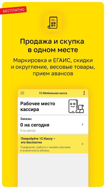 Больше о возможностях приложения: https://torg.1c.ru/small/program/1s-mobilnaya-kassa-v3-0/