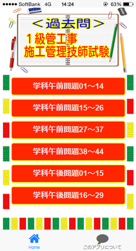 このアプリは、1級管工事施工管理技士技術検定試験の合格にむけて過去問を集めたアプリです。