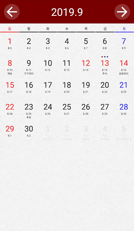 딱히 다른 캘린더와의 동기화라던가 테마, 위젯 등 거창한 기능들은 없습니다.