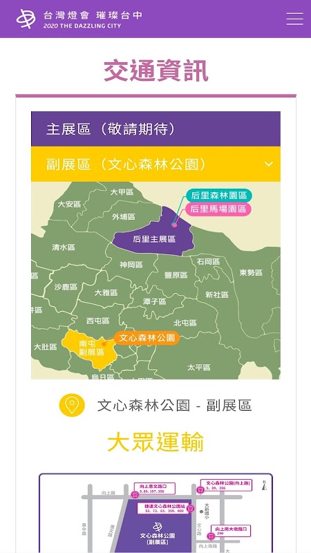 包含「燈區介紹」、「燈區導航」、「交通資訊」,提供你最便捷的方式了解燈會場地,一手掌握精彩活動輕鬆賞燈。