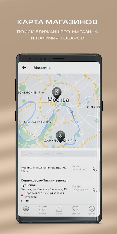 • Поиск ближайшего магазина и просмотр товаров в наличии.
