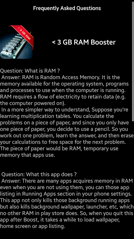 Замечание: Пользователи, которым нужен виджет для очистки памяти в одно касание , могут приобрести версию "Про" — 3 GB RAM Booster Pro.