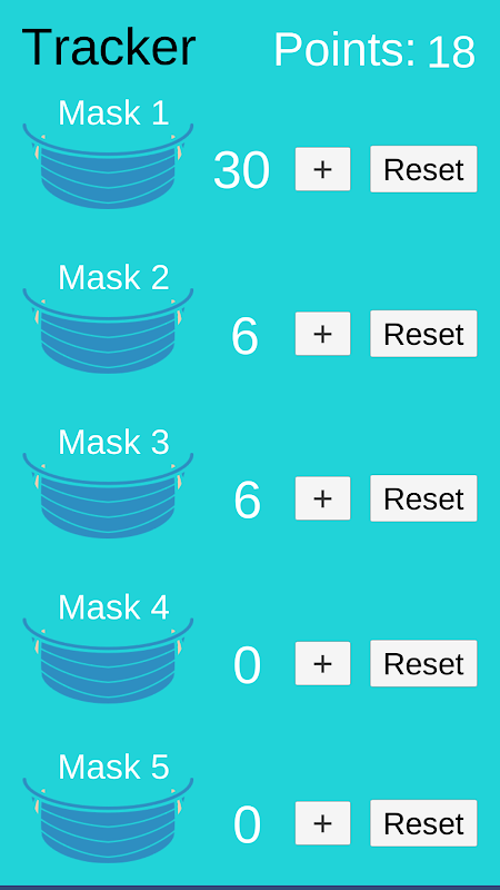 The user will start with 30 points which he/she can allocate to the reusable masks by clicking the plus button.
