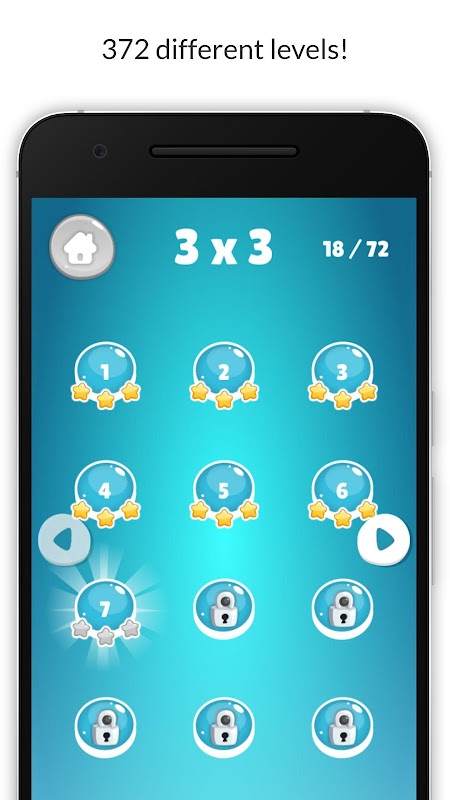 - 6 different board sizes ( 3x3 | 4x4 | 5x5 | 6x6 | 7x7 | 8x8 )