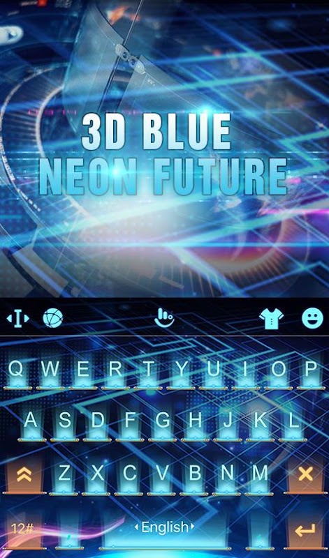 3D Blue Neon Future Keyboard Theme 6.2.23.2019