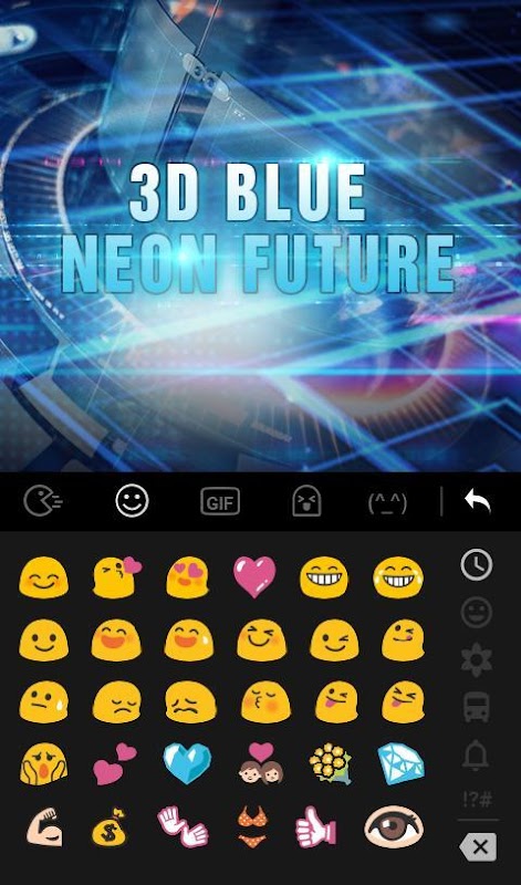 Тема Новые бесплатные 3D Blue Neon будущее для TouchPal Emoji клавиатуры. Typing весело!