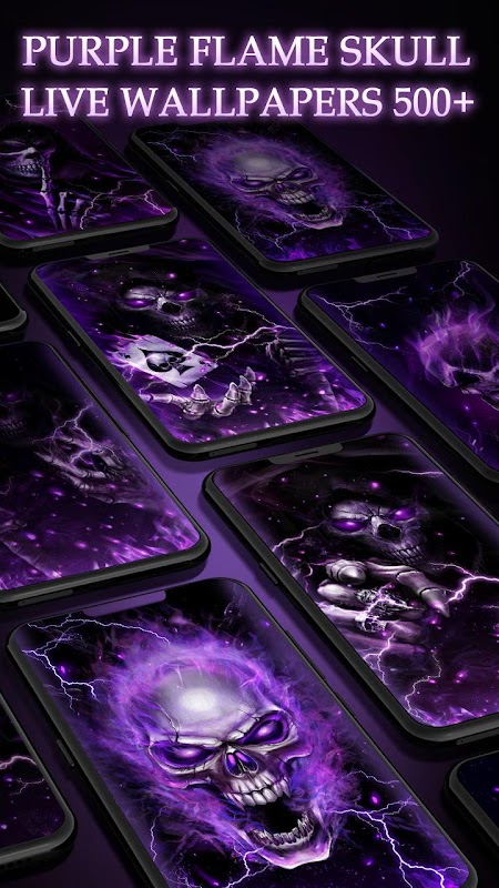 💀 Download flare 3D Purple Flaming Skull Theme Launcher to own fiery flaming icons, 3D turbulent skull wallpapers and tons of supreme fantastic 3D skeleton themes.