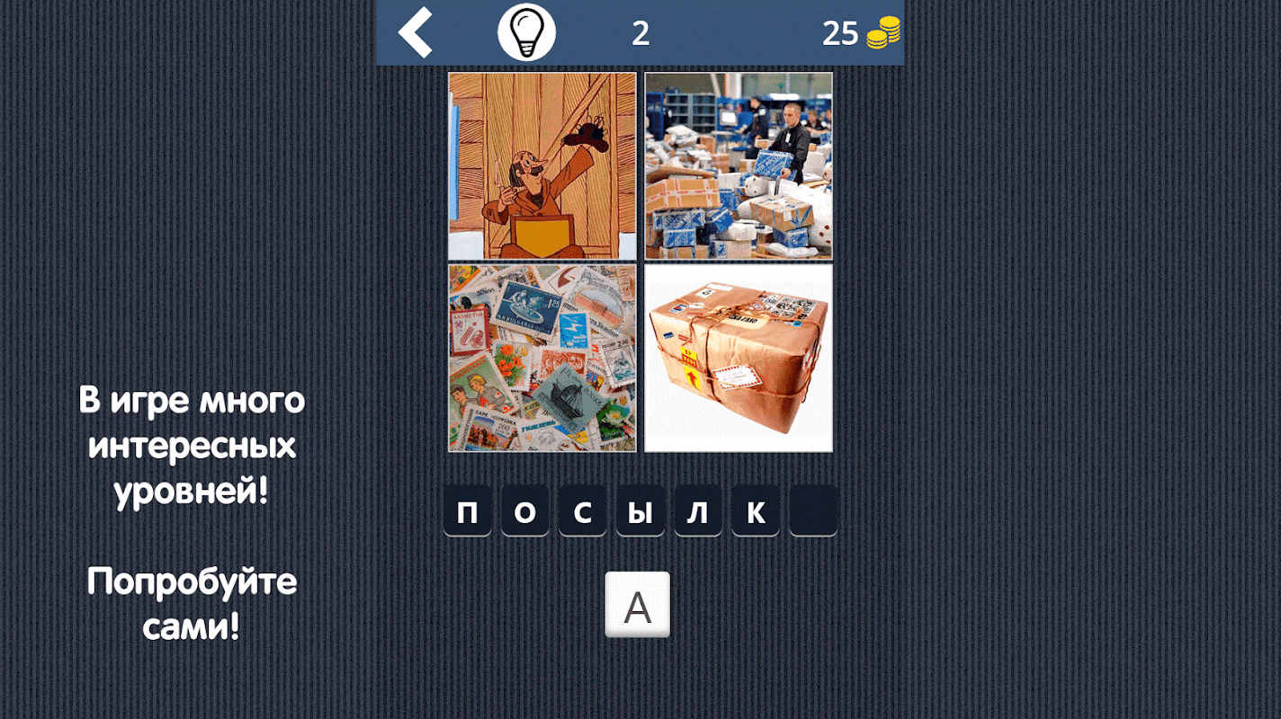 Игра 4 Картинки 1 Слово: Увлечение не даст вам заскучать, поскольку это словесная игра, сделанная в классических традициях жанра. Сложность уровней в игре будет постепенно повышаться и будет заставлять ваш мозг работать на полную!