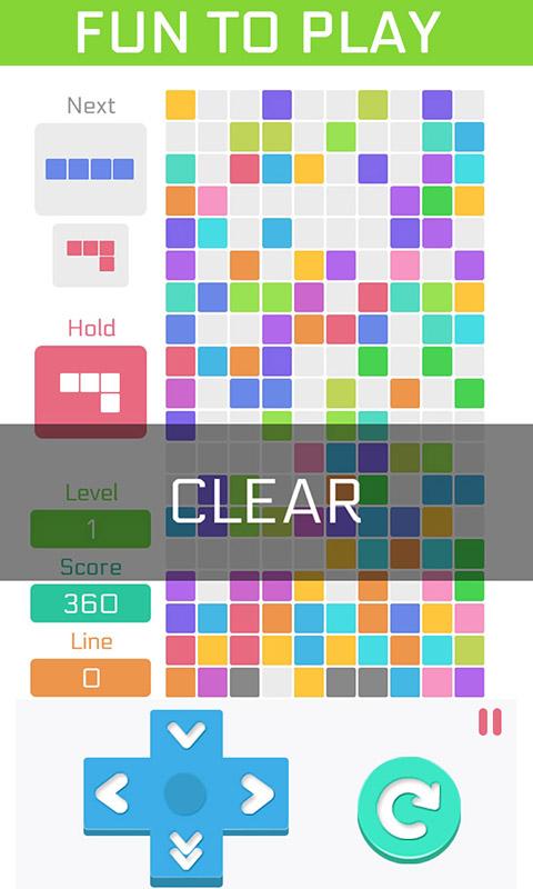 1. CLASSIC mode: Create horizontal lines compose of 10 units without gaps and get the highest score in CLASSIC mode. When a certain number of lines are cleared, the game enters a new level. The number of lines required vary upon each new level.