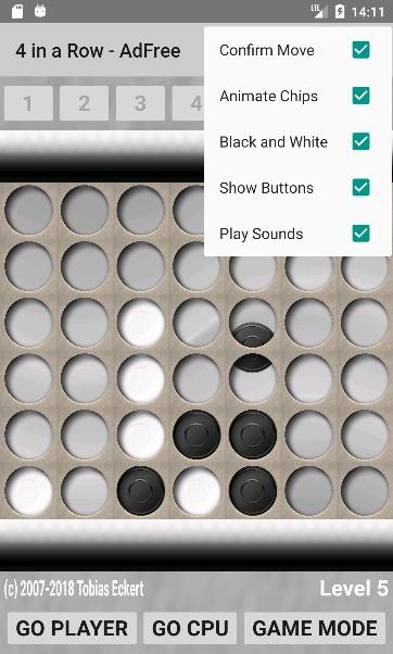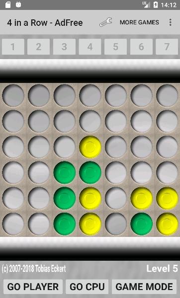 Играйте в «4 в ряд» с двумя игроками или против сложного искусственного интеллекта.