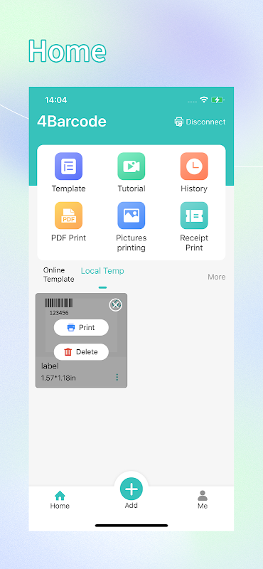 Это приложение представляет собой мобильное приложение, разработанное для принтеров, которое может редактировать и печатать содержимое принтеров штрих-кода. APP включает в себя фиксированные шаблоны и пользовательские шаблоны редактирования. Фиксированный шаблон может быть отредактирован, пользовательский шаблон может быть свободен для редактирования эффекта печати для печати. APP включает в себя штрих-код, двумерный код, текст, изображение, время, таблицу, графику и другие функции. Приложение можно подключить тремя способами: USB, Bluetooth и WiFi.