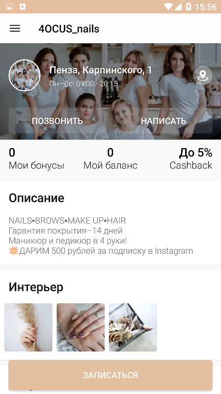 Официальное мобильное приложение студии маникюра и педикюра 4OCUSNAILS