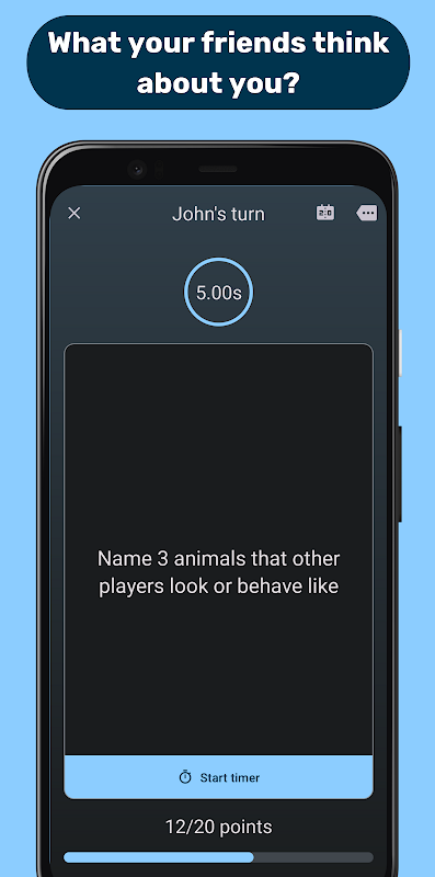 Ищете веселую и увлекательную игру, чтобы играть с друзьями? Ищите не дальше, чем «Правило 5 секунд» — приложение, которое штурмом покоряет мир мобильных игр. Благодаря веселым вопросам и интуитивно понятному дизайну это идеальный выбор для всех, кто любит сложные задачи.