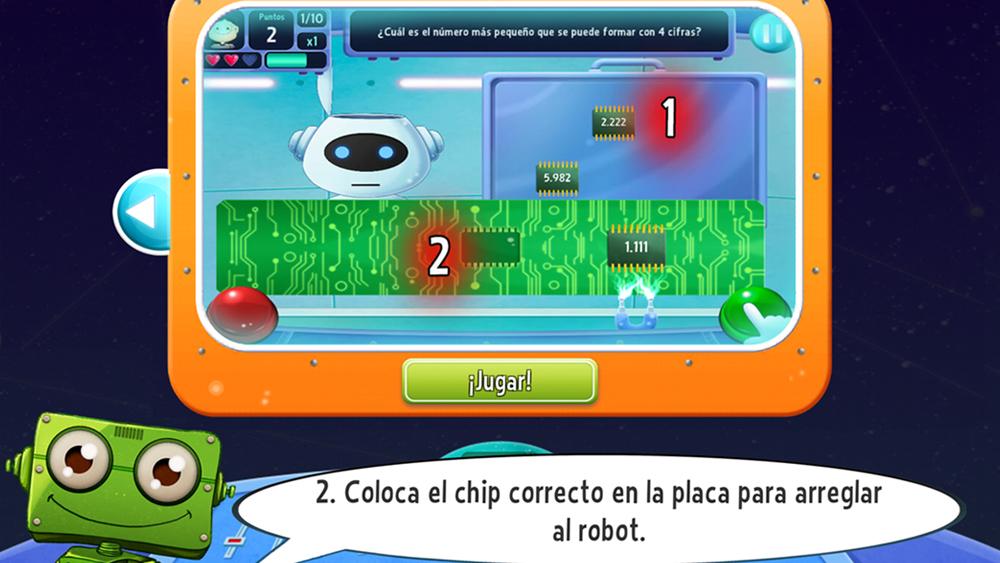 En este juego educativo, los niños tienen que ayudar a Robby a fabricar robots… pero ¿qué placa, chip o cable es el que necesita? Elige el objeto según sea la respuesta correcta. ¡Cuidado! porque si te confundes, Robby deja de trabajar. Piénsalo bien, cuantos más puntos obtengas, mejores trofeos conseguirás. Demuestra todo lo que sabes, ¡A jugar!