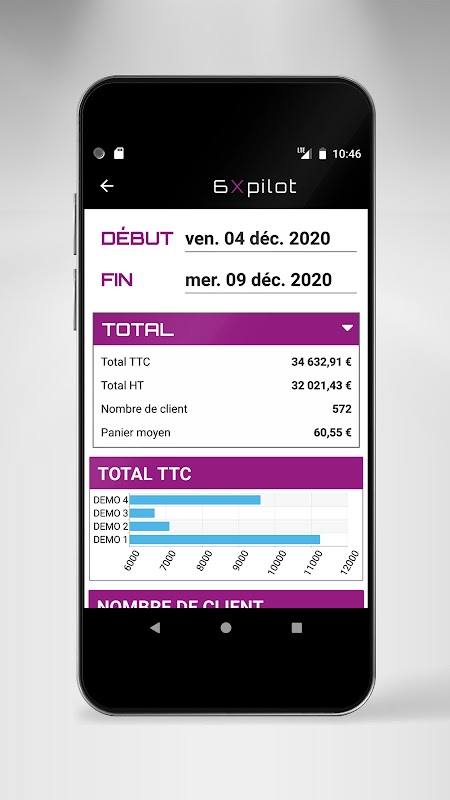 Ежедневный, еженедельный, ежемесячный или годовой оборот, чистые продажи, прогноз продаж, графики, вплоть до деталей билетов - приложение продумало и предвосхитило все ваши потребности в единой запатентованной службе, связанной с Интегрированное кассовое устройство 6Xpos.