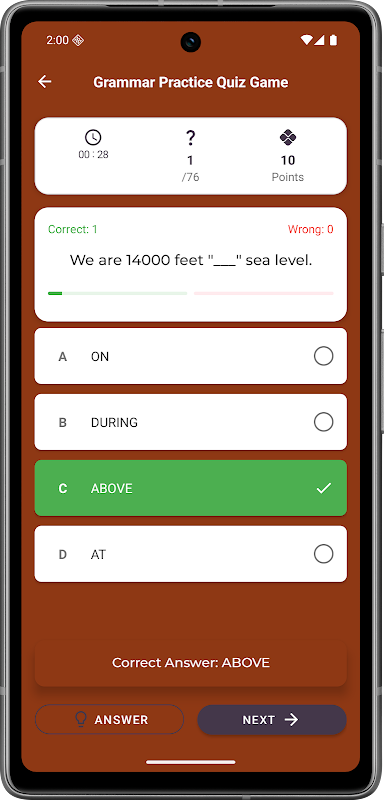 Grammar Practice Quiz Game — увлекательное обучающее приложение, призванное помочь вам улучшить свои знания английской грамматики в увлекательной и интерактивной форме. Независимо от того, являетесь ли вы студентом, претендентом на участие в конкурсе или просто хотите улучшить свою грамматику, это приложение станет идеальным помощником для практики.