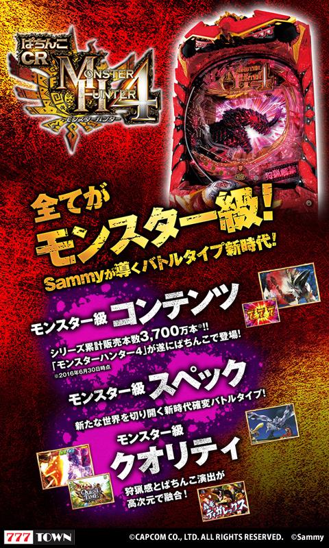 Pachinko CR Monster Hunter 4 наконец-то здесь! Загрузите его сейчас!Pachinko / приложение pachislot безлимитный игровой сервис № 1 "777TOWN мобильный"