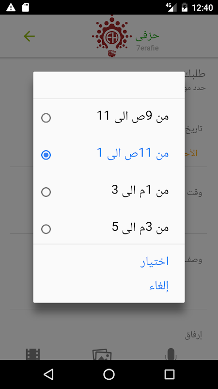 -- يمكنك بعد ذلك تحديد وتوصيف الخدمة التى ترغب بها بكل سهوله حيث يتميز التطبيق بسلاسه وسهوله استخدام