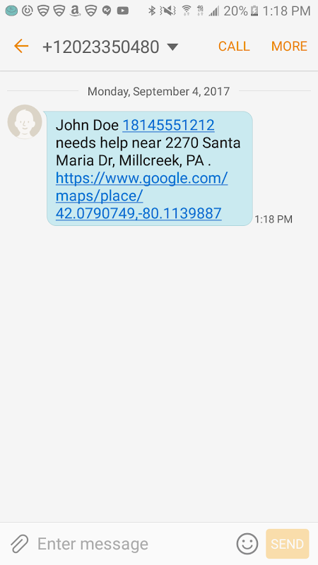 Текст SMS 911 укажите информацию о местоположении одним нажатием.